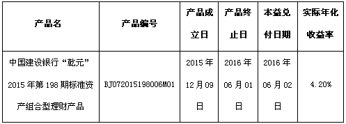 根据与投资者的约定,中国建设银行北京市分行发行的下列理财产品已经到期,现将理财产品兑付及清算情况进行信息披露: