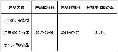 根据与投资者的约定,现将理财产品成立情况信息进行披露: