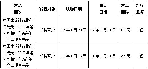 中国建设银行北京市分行定于2017年1月23日发行理财产品,现将相关发行情况公告如下: