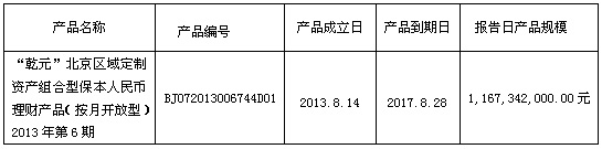 我行依照《中国银监会关于规范商业银行理财业务投资运作有关问题的通知》(银监发【2013】8号)要求,现对“乾元”北京区域定制资产组合型保本人民币理财产品(按月开放型)2013年第6期投资非标准化债权资产清单披露如下: