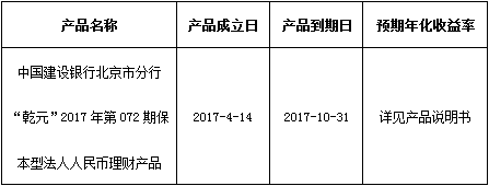 根据与投资者的约定,现将理财产品成立情况信息进行披露: