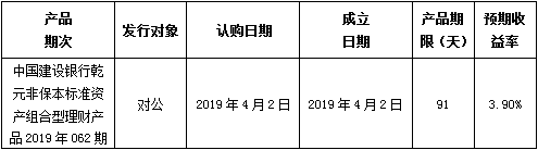 中国建设银行北京市分行定于2019年4月2日发行理财产品,现将相关发行情况公告如下: