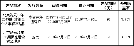 中国建设银行北京市分行定于2019年7月23日发行理财产品,现将相关发行情况公告如下: