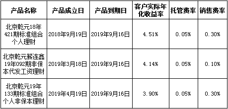 注:上述产品按照说明书中关于资产的投资类型和比例的约定进行投资,所投资非标准化债权资产已进行披露,产品运作收益超出客户实际年化收益率、托管费率及销售费率的部分将作为产品的浮动管理费用。特此公告。