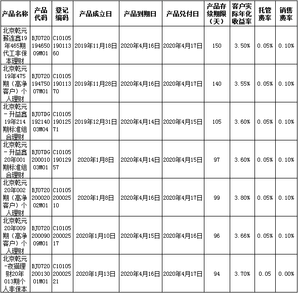 中国建设银行理财产品终止及清算公告2020年4月17日