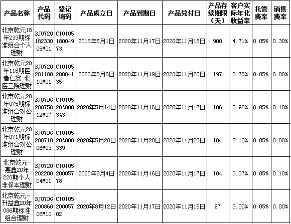 中国建设银行理财产品终止及清算公告2020年11月23日