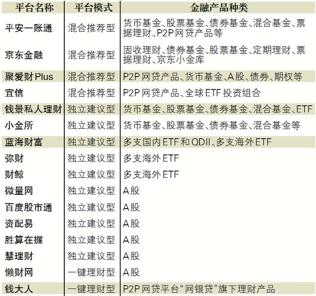 混合推荐型平台在业务中融入了平台自身特有的金融产品,即向用户推荐的投资组合中,部分金融产品是平台参与开发的。该类型平台仍然通过调查问卷的方式,对用户的年龄、资产、投资期限和风险承受能力等方面进行分析。与独立投资型平台不同的是,混合推荐型平台在经过大量计算后为投资者推荐的产品分为平台特有金融产品和其他机构金融产品两类。