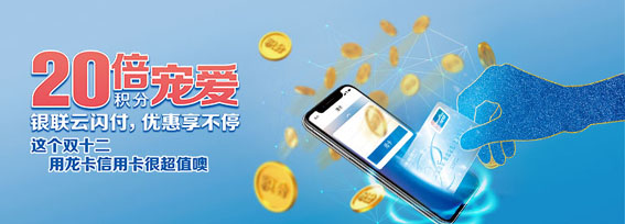 12月12日至12月23日,使用龙卡信用卡银联卡手机闪付及银联二维码交易,可享消费金额20倍额外奖励积分。每位用户每日奖励积分封顶1万分,每日限前1万笔,按交易时间排序,先到先得。
