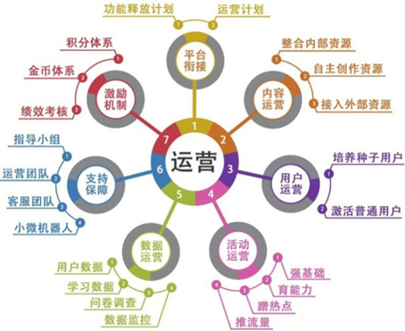 从运营管理的内容方面看,主要围绕平台衔接、内容运营、用户运营、活动运营、数据运营、支持保障、激励机制等七个方面开展平台运营工作。(图5)
