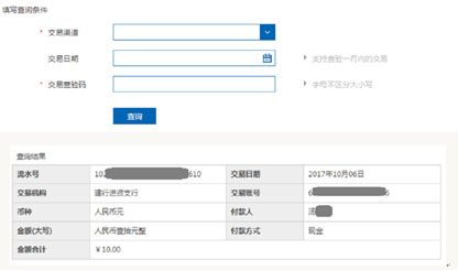 95533答:交易查验功能可以帮助客户查询建行相关电子印章回单交易信息,核对回单要素是否被篡改、是否真实有效等。您可以登录个人网上银行,依次点击“我的账户-更多服务-交易查验”,选择“交易渠道”,分为个人网银、柜面/智慧柜员机两种,输入“交易日期”及 “交易查验码”,点击“查询”即可验证查询结果。