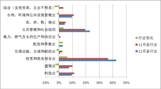 (三)融资类资产的行业占比构成及当月增减变化情况
