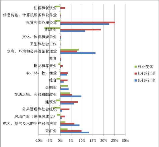 (三)融资类资产的行业占比构成及当月增减变化情况