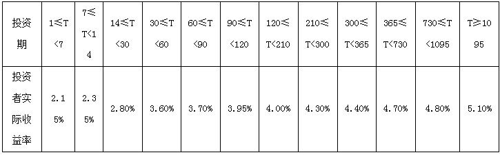 根据产品说明书的约定,2015年4月1日至2015年4月30日投资者实际收益率如下表所示: