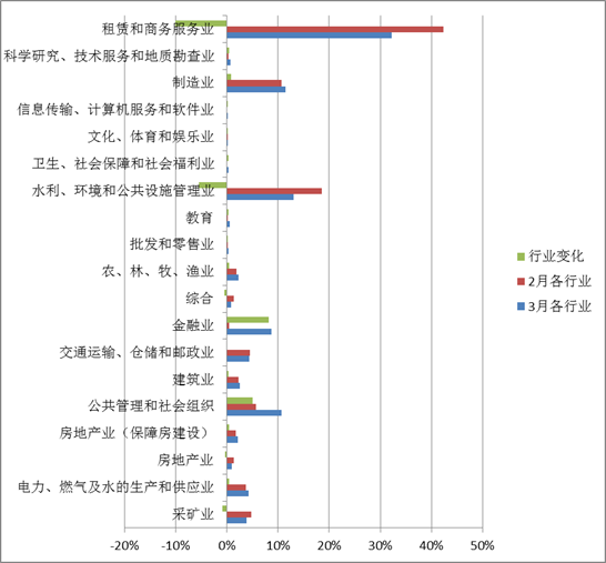 (三)融资类资产的行业占比构成及当月增减变化情况