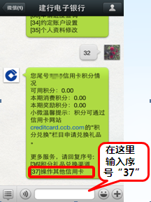 2) 切换至对话模式,在微信页面输入“操作其他信用卡”所对应的序号
